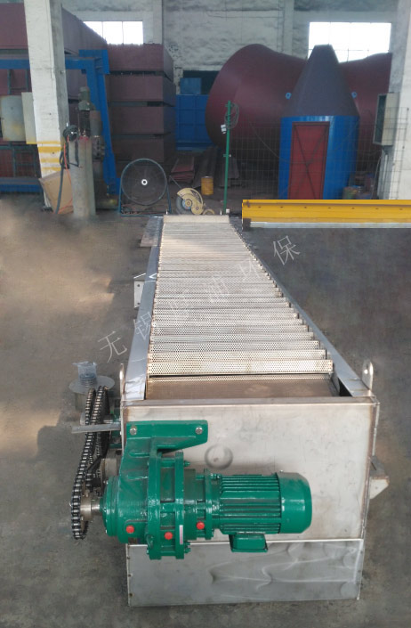網(wǎng)板式階梯格柵機的驅(qū)動裝置位于機架上部,除傳動裝置外,其余均采用不銹鋼材料制造。驅(qū)動裝置采用軸裝式減速機,在機架二側(cè)設(shè)置螺旋式調(diào)節(jié)裝置,以作調(diào)整傳動鏈條張緊用。